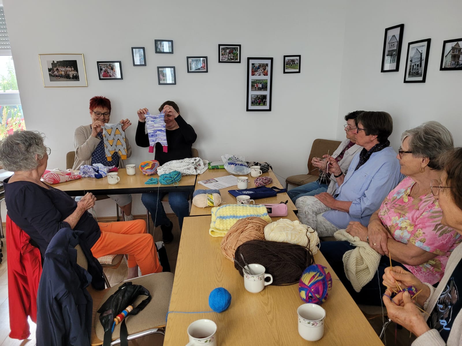 Der Handarbeitskreis der AWO hat seit kurzem ein paar neue Besucherinnen; sie bringen neue Ideen ein und bereichern damit das Angebot für die Pommernbienchen. Jetzt gibt es nicht nur allerlei gestrickte Kleidungsstücke für die kleinen Frühchen, jetzt gibt es auch genähte Sachen.