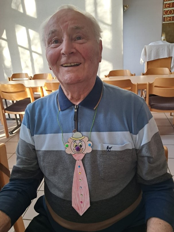 Am Donnerstag war Weiberfassenacht – da konnte das Plaudercafé nicht wie gewöhnlich stattfinden. Es wurde ordentlich gefeiert, geschunkelt und gelacht. Natürlich gab es statt des üblichen Kuchens auch Kreppel und am Abend einen zünftigen Kartoffelsalat mit Würstchen. Auch die Sitte Krawatten abzuschneiden wurde aufgegriffen, zunächst wurden sie Schlipse liebevoll gebastelt und bemalt, dann wurden sie gegeneinander abgeschnitten.