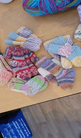 Alle zwei Wochen treffen sich strickbegeisterte Frauen aus Ober-Mörlen und Langenhain im AWO Häuschen. Dort entstehen immer zwischen 10 und 12 Uhr am Vormittag die schönsten Arbeiten. Decken, Söckchen und kleine Pullover werden mit viel Liebe hergestellt und anschließend an die Pommernbienchen gespendet. Eine wunderbare Zusammenarbeit, von der alle Teilnehmer und die Frühchen und Sternenkinder profitieren.